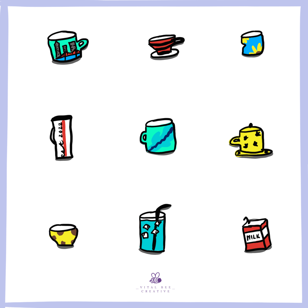 In The Art of Gathering, Priya Parker suggests inviting those on the call to share what beverage they are drinking and tell the story behind their mug. To get more participation, you tell your team ahead of time that this will be the meeting kickoff activity and to come prepared with their favorite comfort beverage. In this activity your visual is the physical object of the mug.