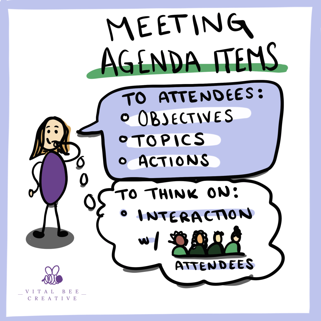 Your agenda will be an overview for attendees where you share your expectations for the meeting.
