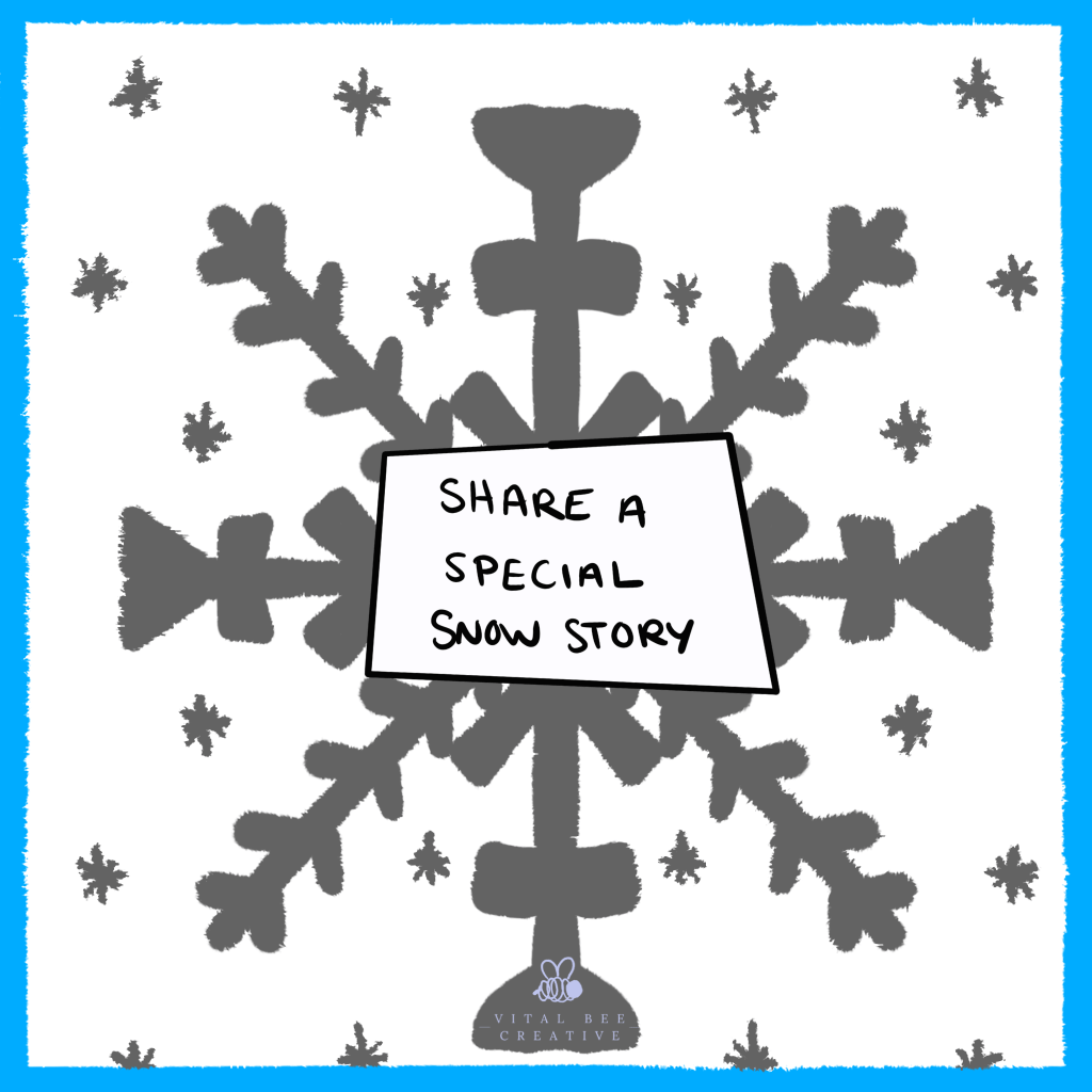 MY SNOW STORY: Dead summer in Texas, think 100* and humid. I’m at a friend’s house and spend at least 30 minutes shaving ice into powder using their plastic snow cone crank so I can make 1 perfect snowball. When my brother comes with my aunt to pick me up, I peg him right in the chest, he didn’t know what hit him! As the big sister I’ve gotta keep him on his toes 🙂