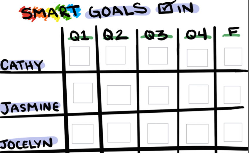 Set your team up for success in reaching their goals by having a whole team workshop to discuss and develop goals together. Goals are more likely to be achieved when they are visual, revisited, crafted in a SMART format, and shared with accountability buddies.